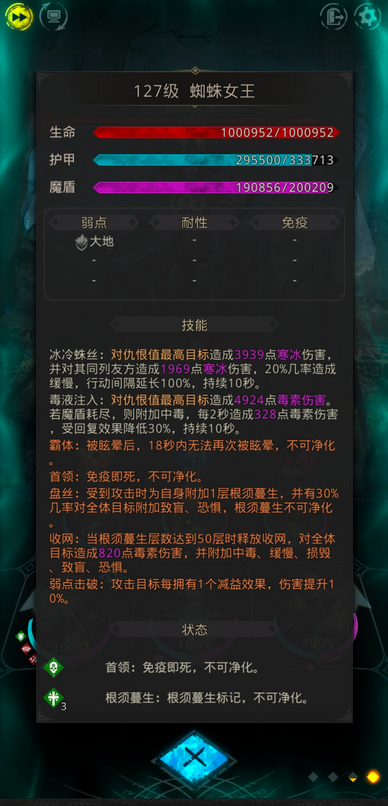 开局时可以暂时关闭自动战吼和倍速功能,先让队伍承受住BOSS的最初几轮攻击,再由奶妈使用战吼技能来稳定全队血量。随后可以开启倍速,并让你单体输出最高的角色开启自动战吼来全力输出。整个战斗的核心就是要确保盾卫的存活,并严格避免任何队友死亡出发BOSS的嗜血回复。如果你的队伍练度不算很高,可以考虑采用上毒的打法,携带像北方的预言者、告死鸟、蛮巫这类能使敌人中毒的角色,通过持续的中毒伤害来慢慢削弱BOSS。合理利用好战吼点,在BOSS准备释放关键技能时,及时使用战吼来打断或快速压低其血量,将是决定胜负的关键。